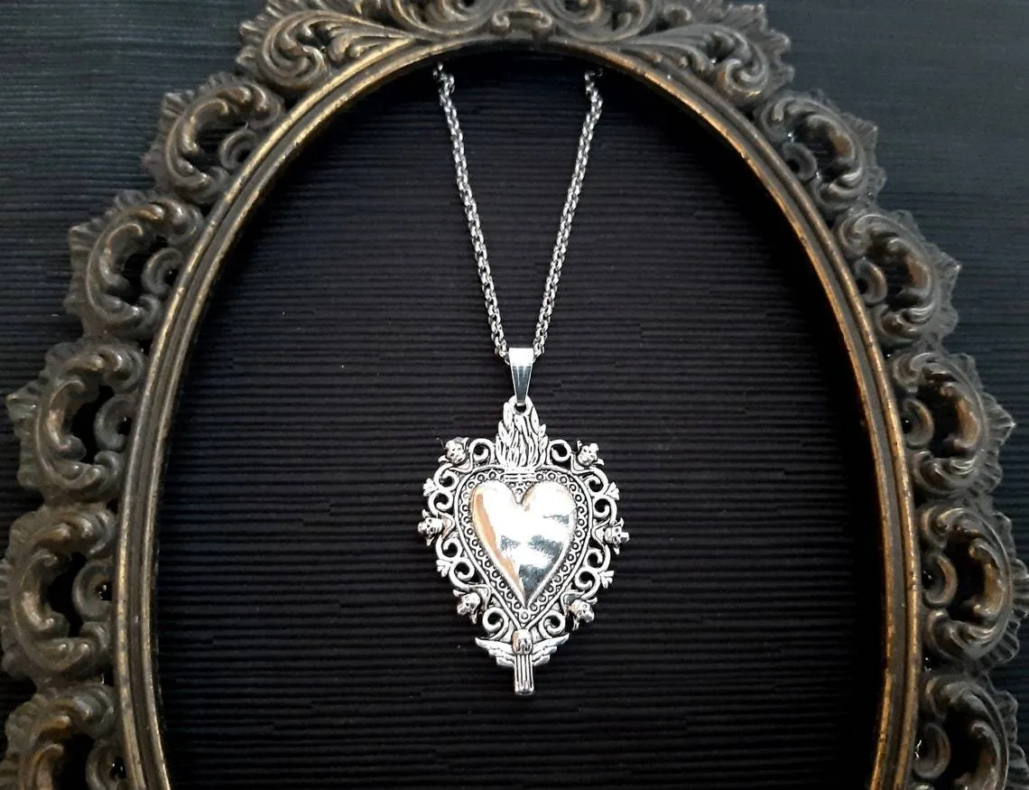 Women's Gothic Sacred Heart Pendant Necklace
