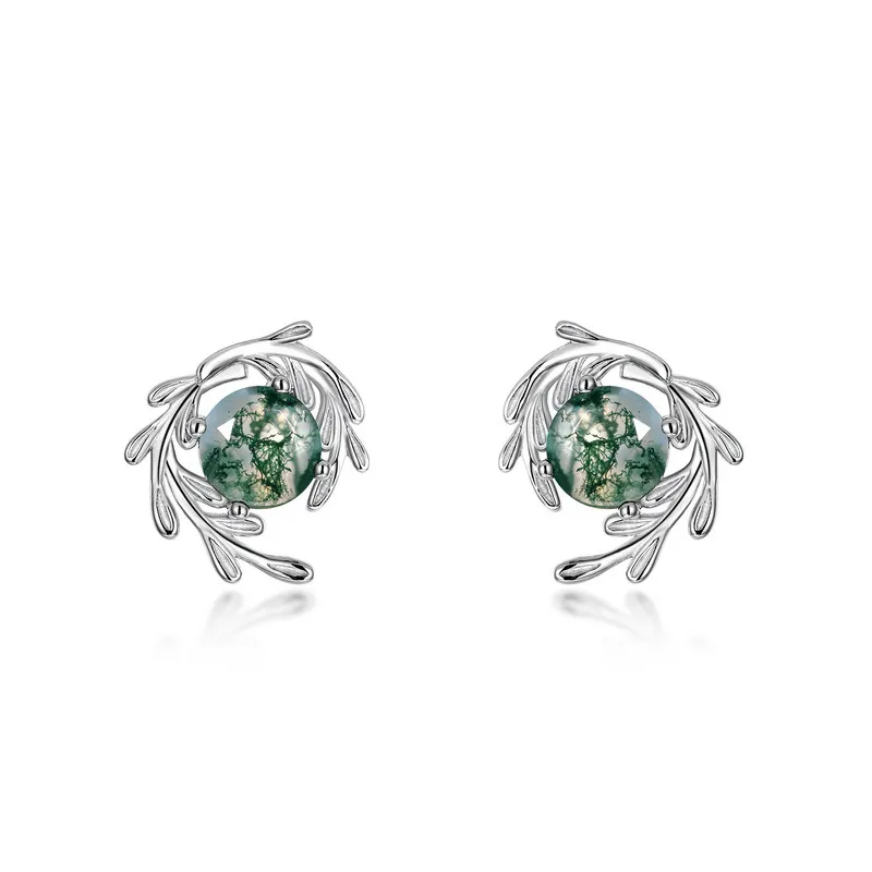 Women’s Green Moss Stone Water Plants Agate Earrings: Nature-Inspired Elegance and Healing Power