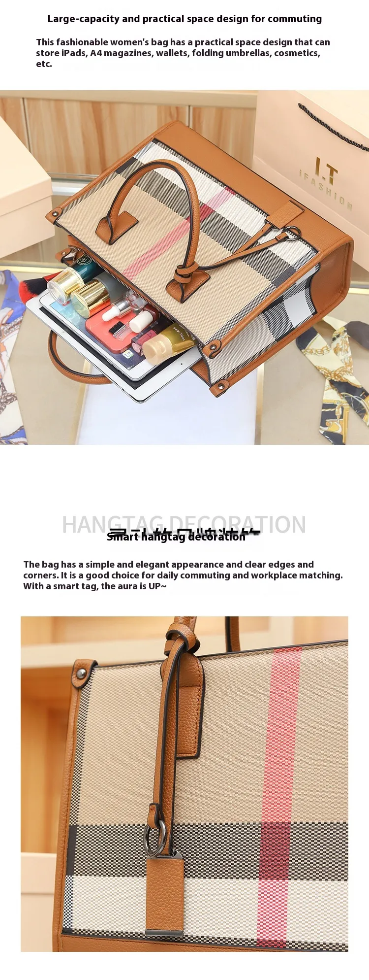 With its generous large capacity, the Women's High-Grade Handbag offers ample room to store all your daily essentials and more. From your smartphone, wallet, and makeup to your keys, notebook, and even a tablet, this handbag ensures you never have to leave anything behind. The interior compartments are designed to keep everything organized and easily accessible.