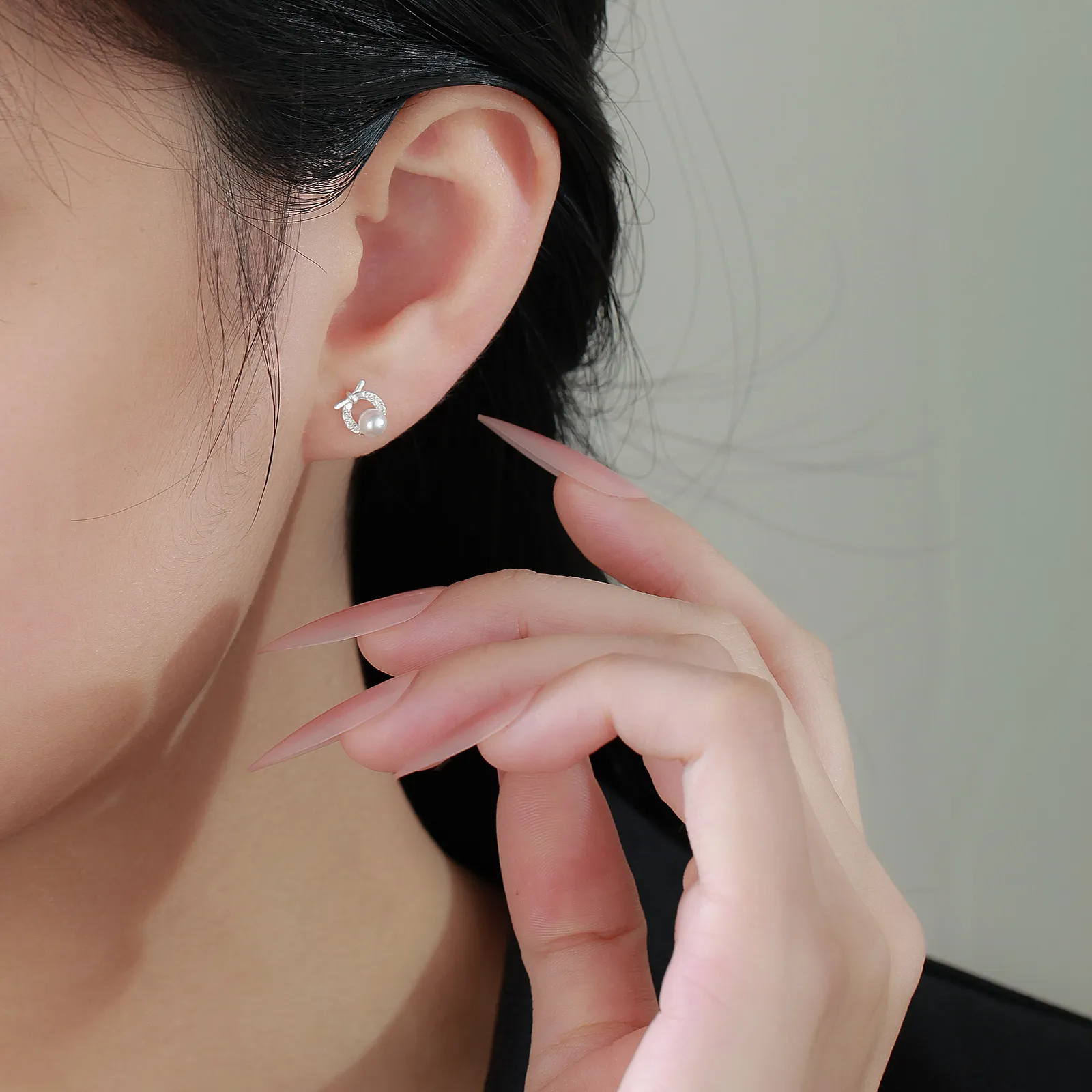 Women's Hollow S999 Sterling Silver Round Bow Stud Earrings