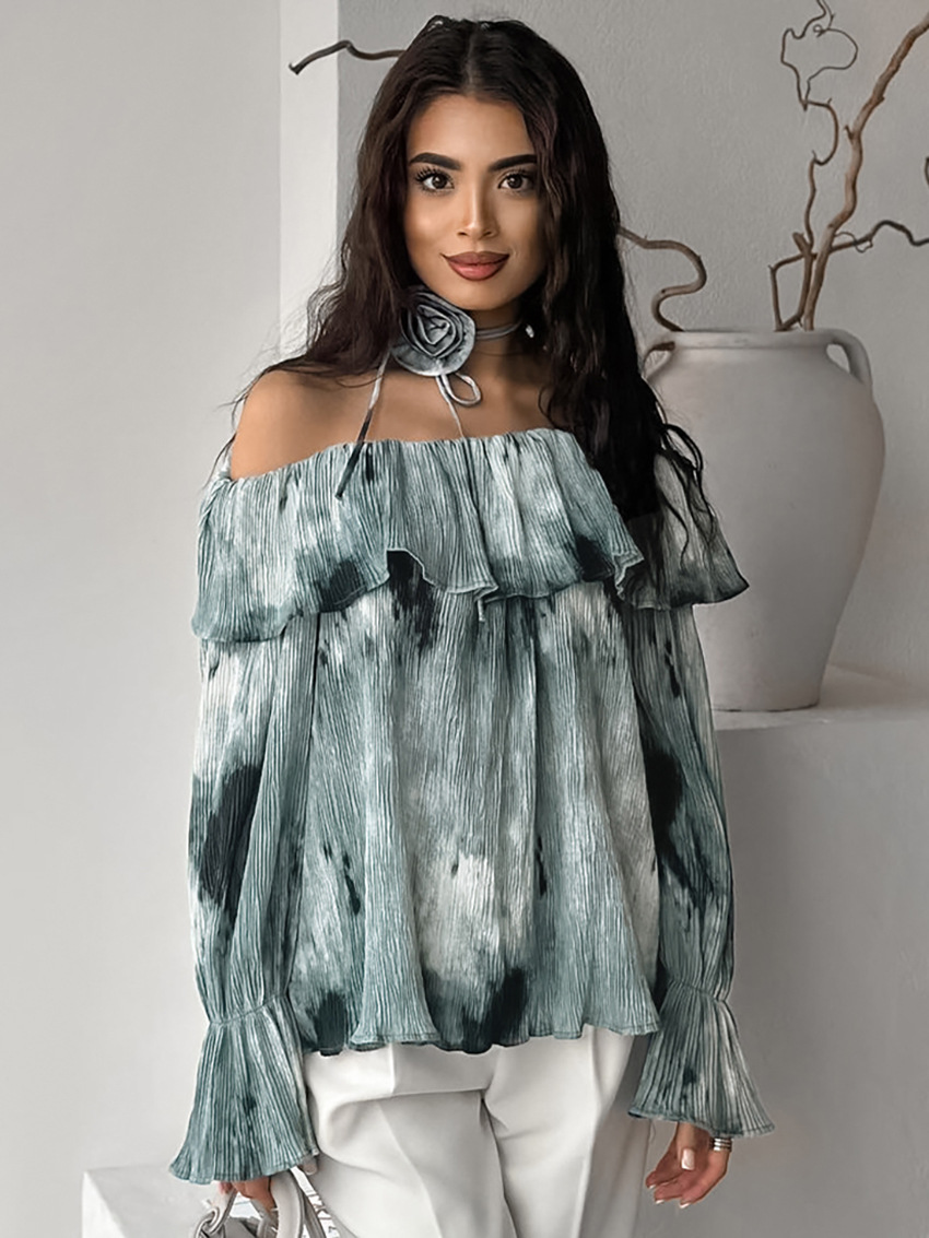 Women's Ink Painting Lace-up Off-shoulder Top