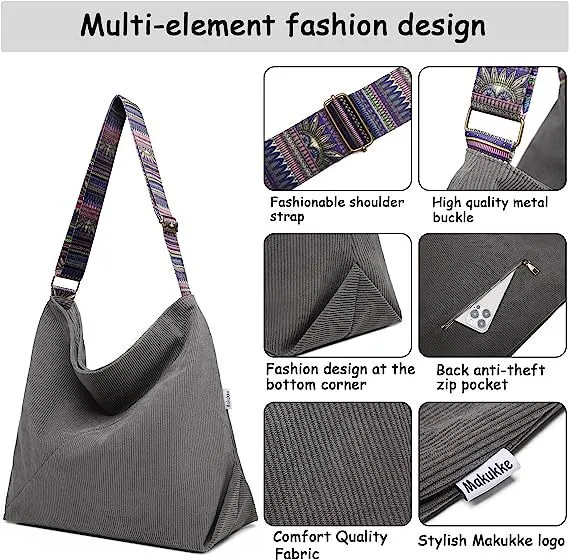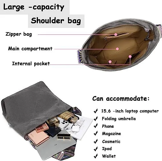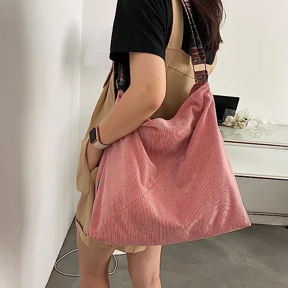 Women's Large Crossbody Fashion Corduroy Retro Hobo Fashion Shoulder Bag