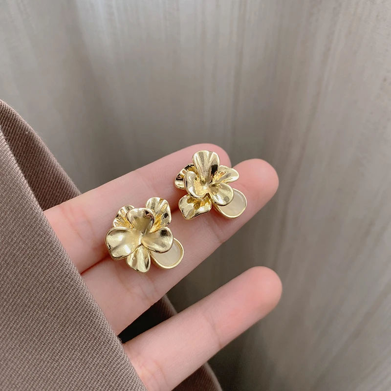 The design draws inspiration from French retro aesthetics, offering a timeless and luxurious appeal. The combination of golden petals and a three-dimensional metal structure makes these earrings a standout accessory.