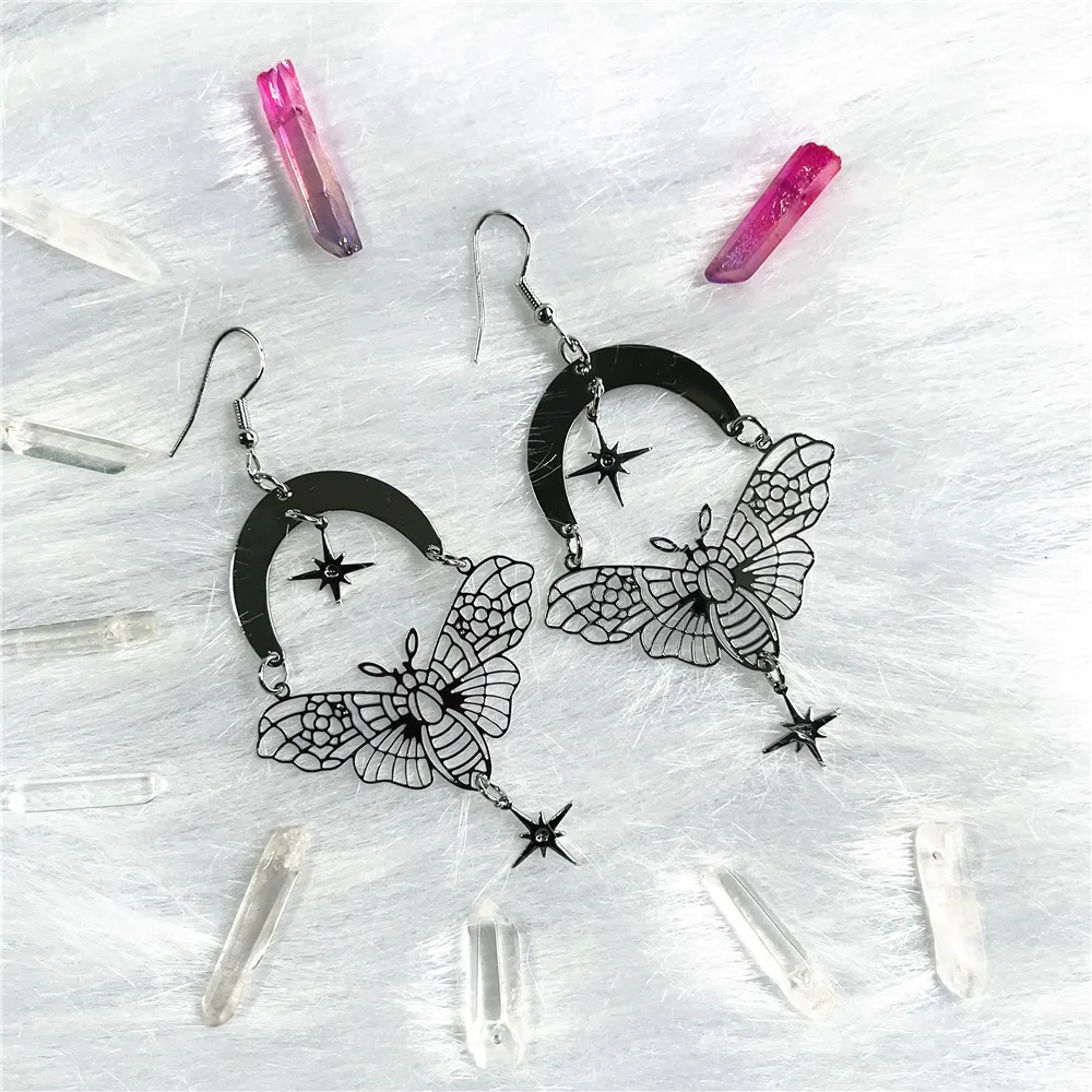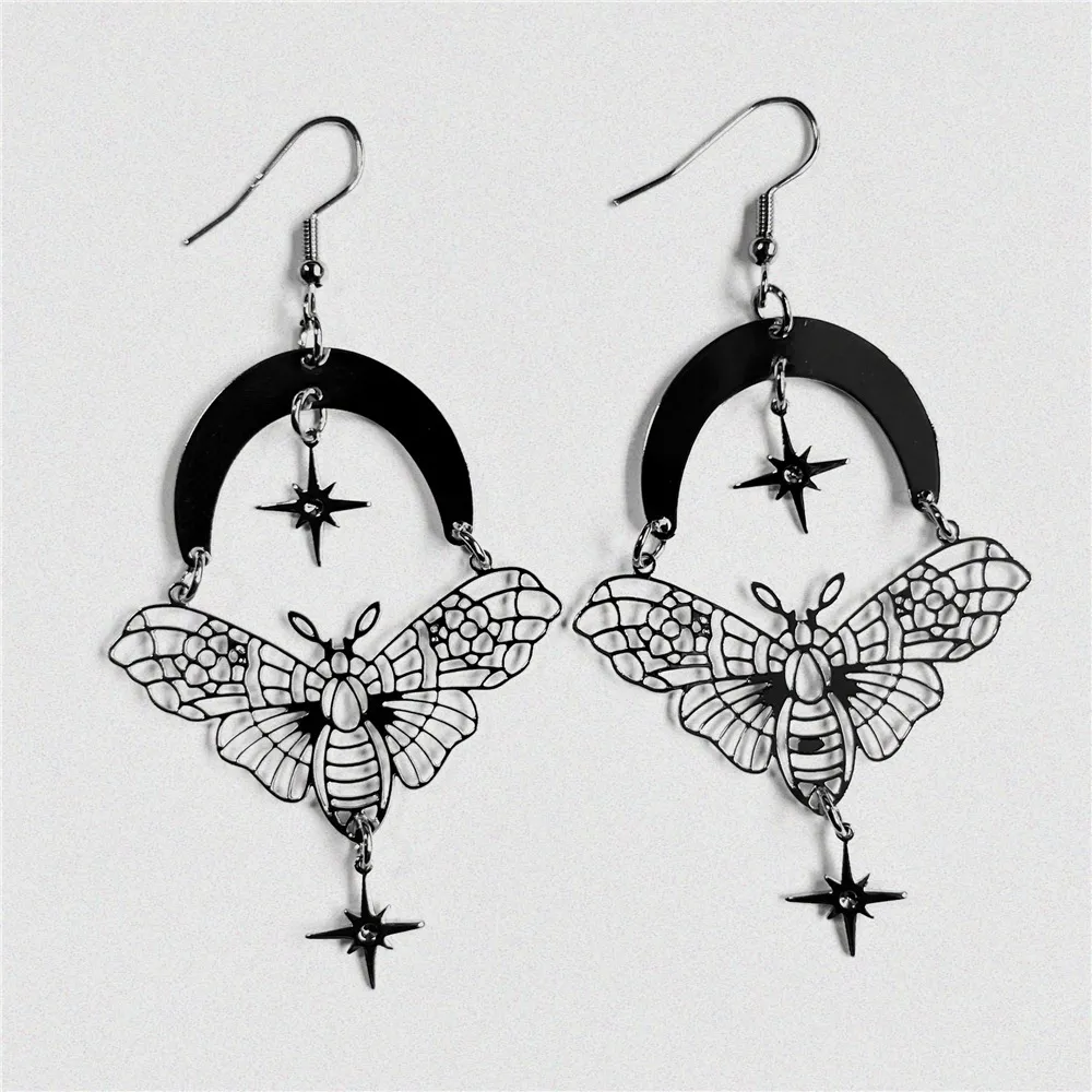 Women's Moth Moon Star Earrings