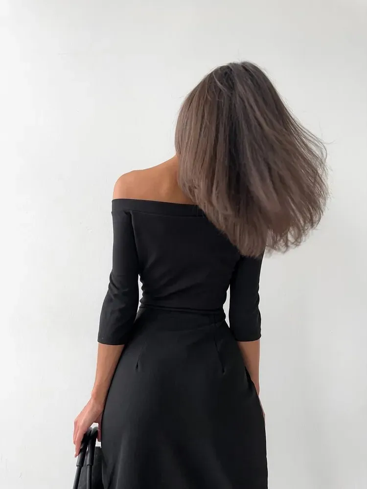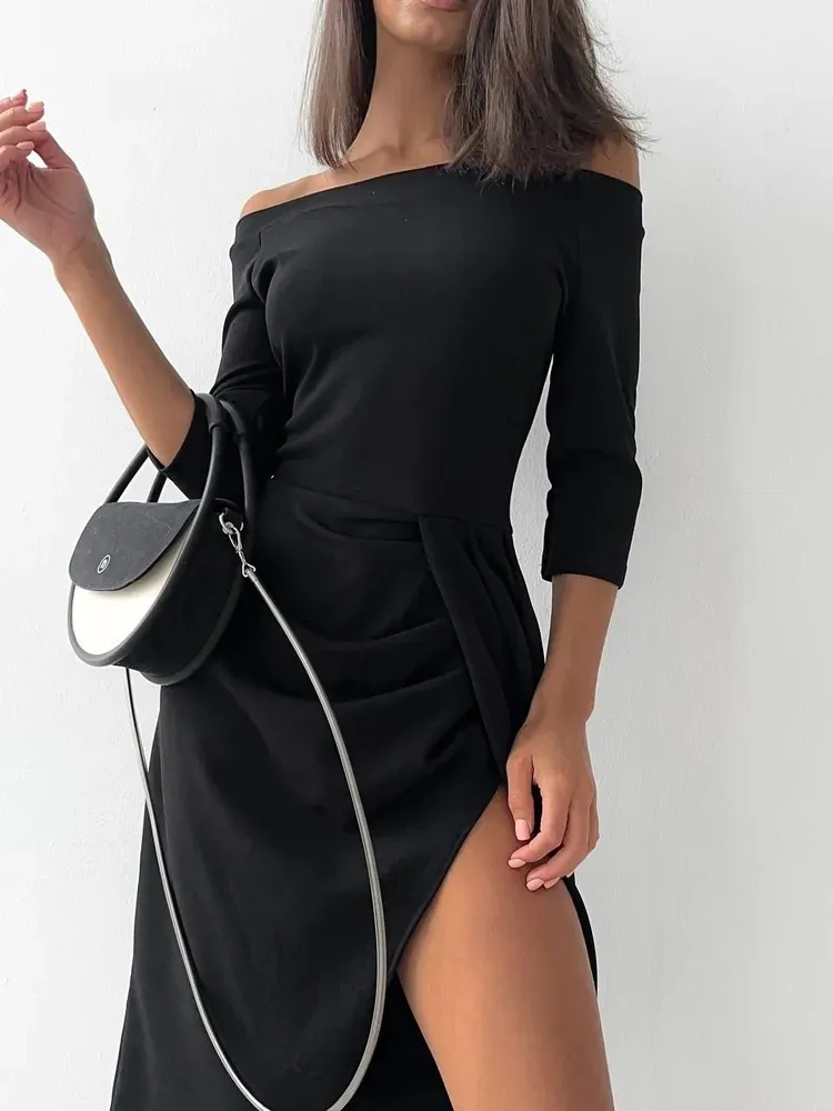 Crafted from high-quality, breathable fabric, the Women’s Off-Neck Long Sleeve Waist Slit Dress offers both comfort and elegance. The waist-slit detail enhances the dress’s modern appeal, while the sleek, minimalist design makes it a versatile piece that can easily transition from day to night. Perfect for formal dinners, cocktail parties, or evening gatherings, this dress exudes sophistication with a touch of edge. Style it with high heels and statement jewelry for an unforgettable evening look, or pair it with minimalist accessories for a more understated, chic vibe.