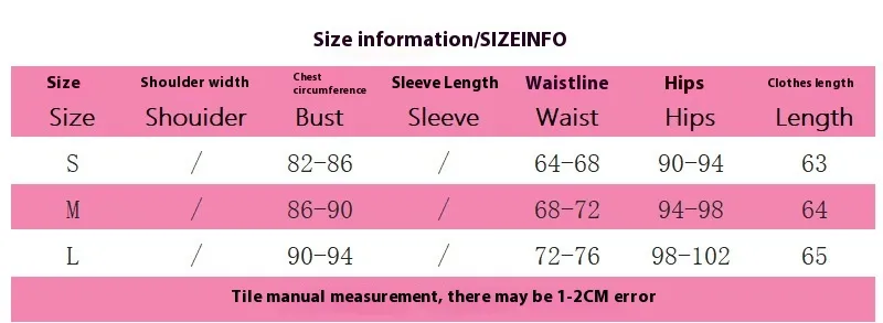 size between two sizes. Please allow 2-3cm differences due to manual measurement.
