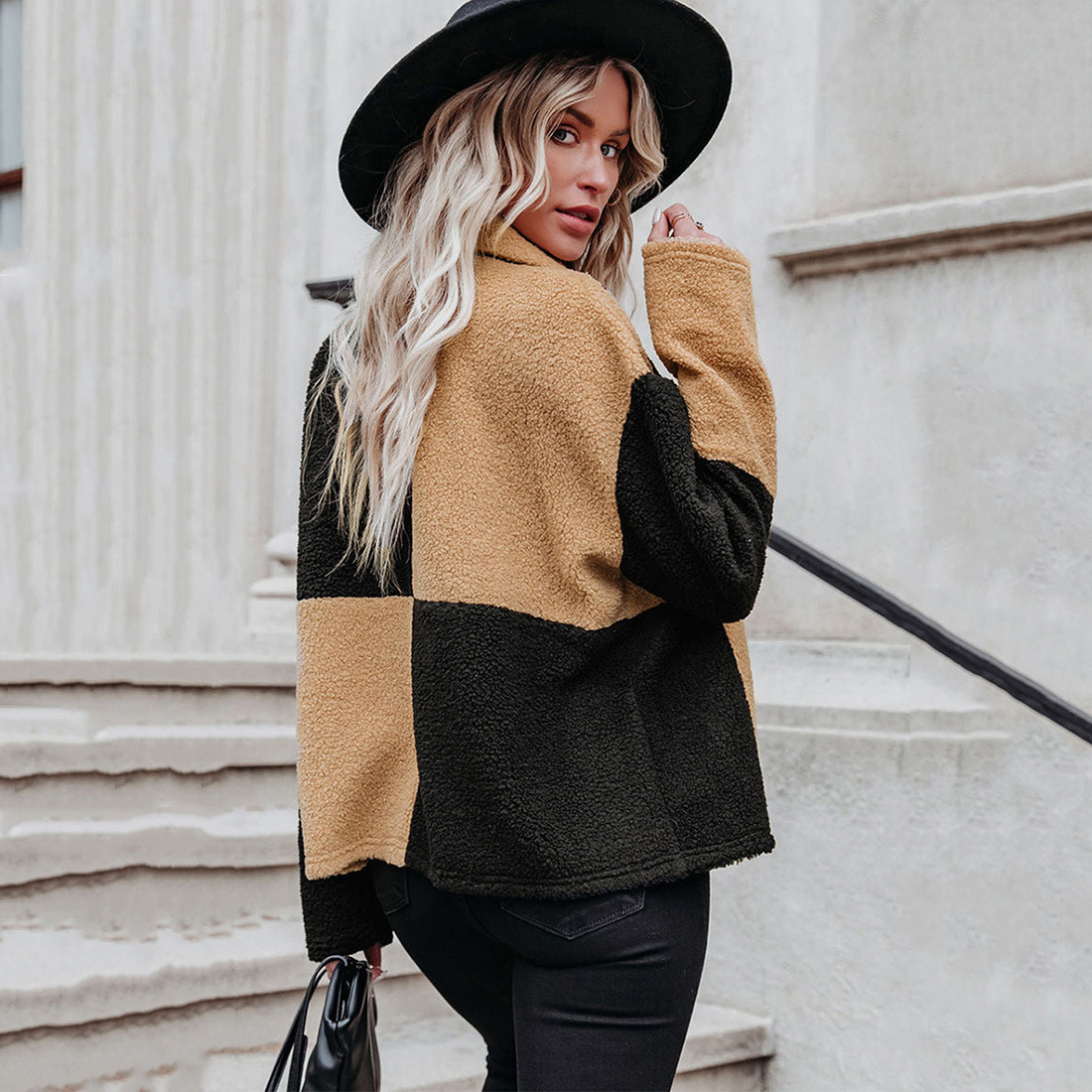 Women's Patchwork Single-breasted Woolen Coat