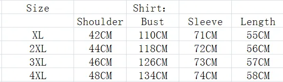 Size: XL, 2XL, 3XL, 4XL