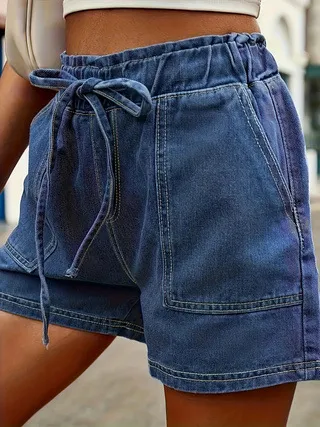 Women's Plus Size Summer Jeans Elastic Waist Tie Solid Color