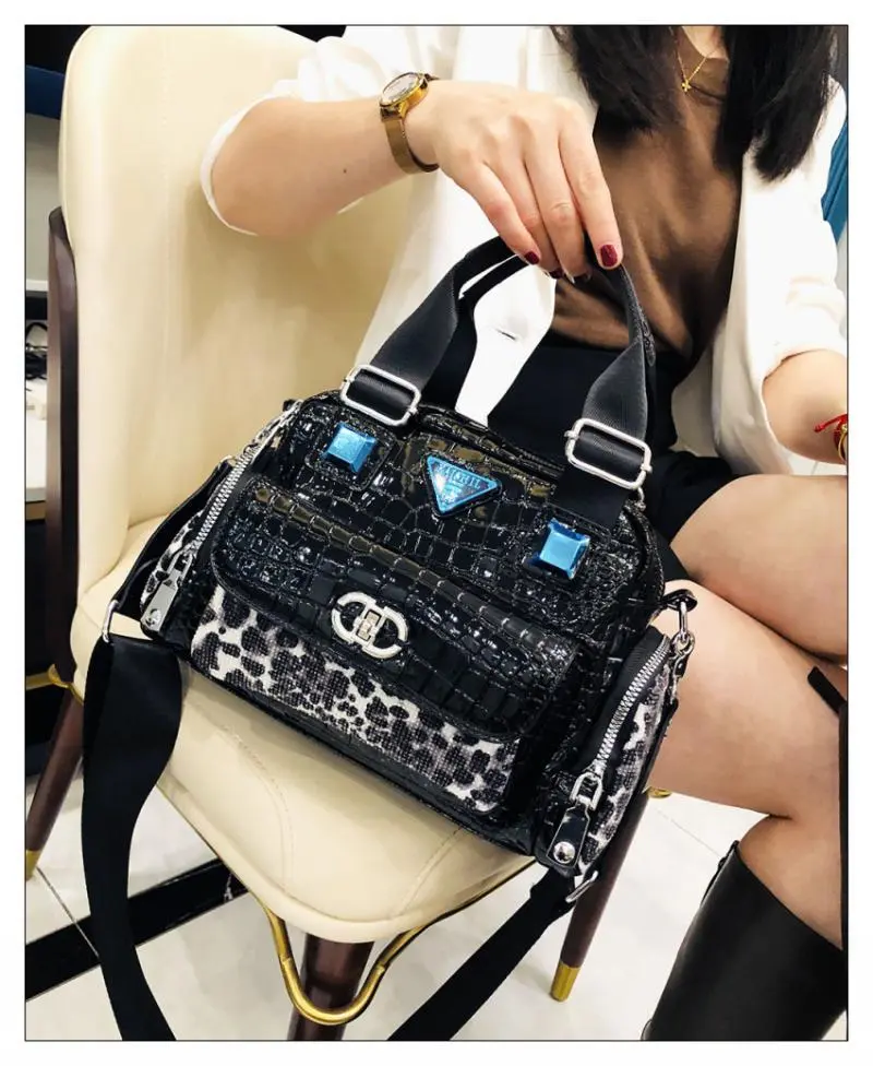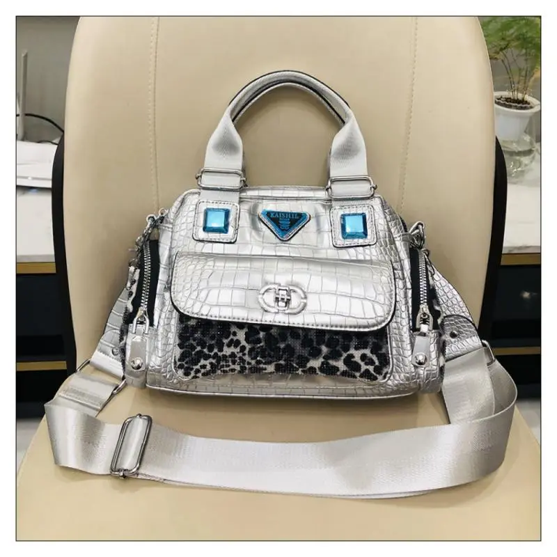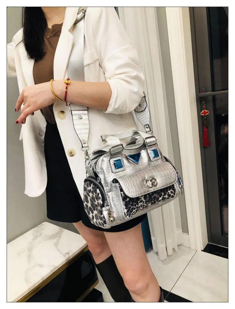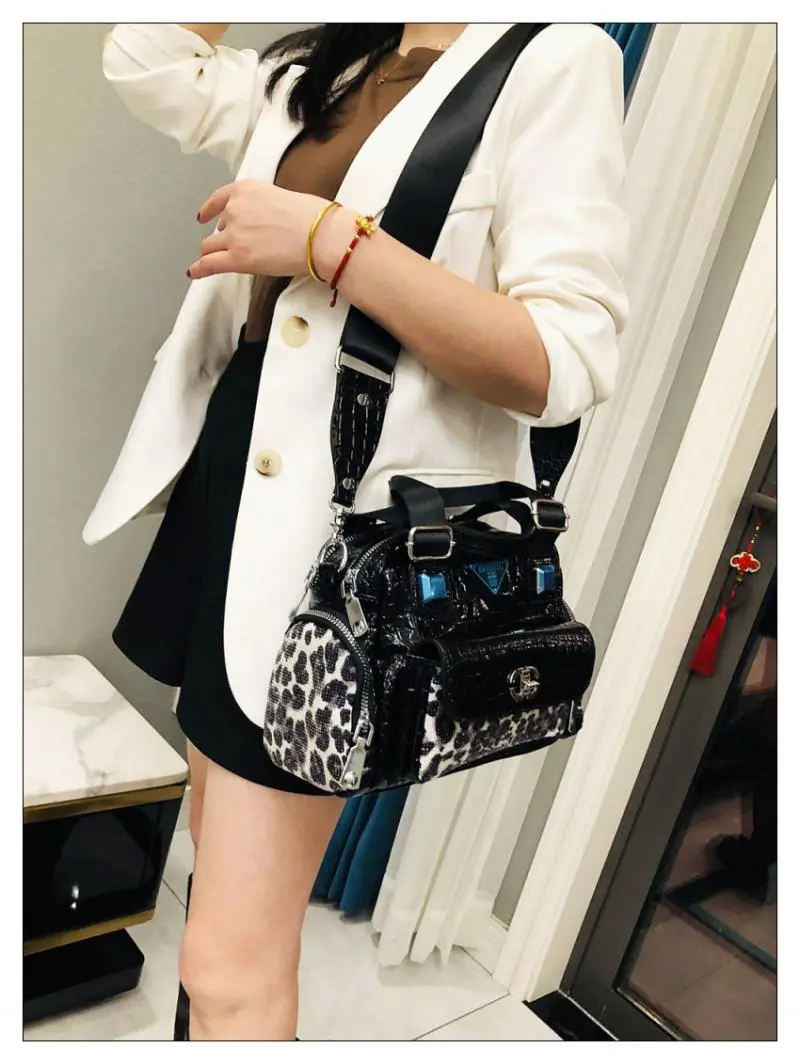 Make a striking impression with the Women’s Polyester Leopard-Print Rhinestone Crossbody Bag. Designed for those who love bold patterns and shimmering details, this bag combines functionality with dazzling style. Whether for a casual outing or a night on the town, its unique design and practical features make it a must-have accessory for the modern woman.