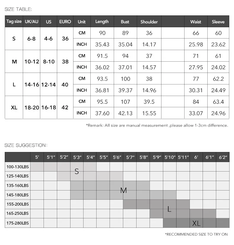 2-3cm differences due to manual measurement. 2. Please check the size chart carefully before you buy the item, if you don't know how to