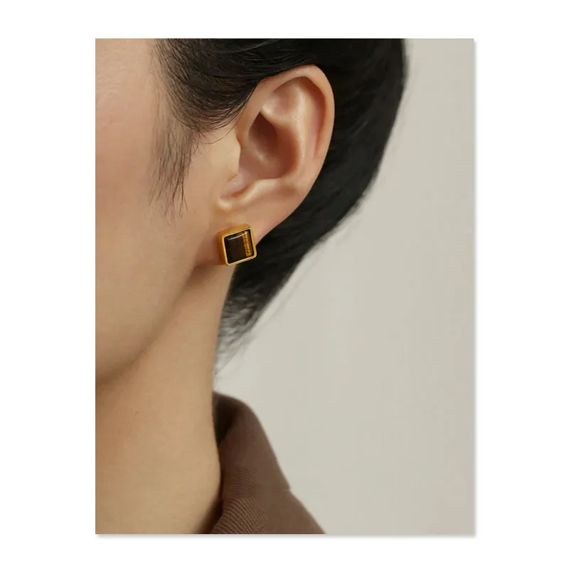 Designed with retro fashion influences and a minimalist approach, the earrings offer a perfect balance of vintage charm and modern simplicity. The stud earring design is sleek and timeless, making these earrings suitable for both casual and formal wear. The subtle yet striking presence of the natural stone adds an understated elegance to any look, perfect for those who prefer minimalist accessories with a touch of retro flair.