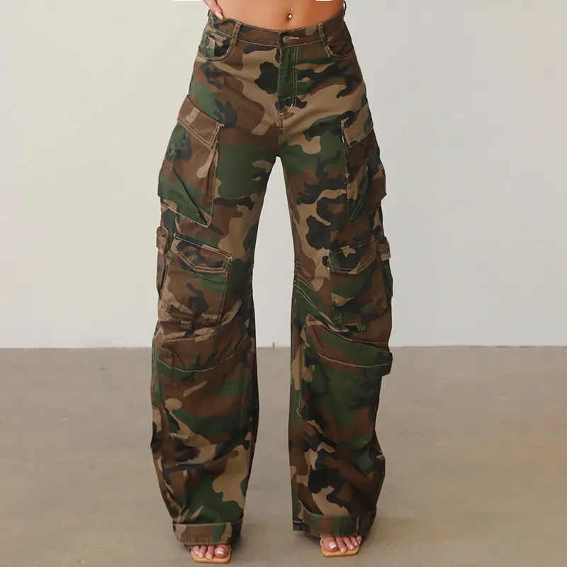Women's Side Multi-pocket Decorative Design Camouflage Cool Handsome Loose Street Jeans