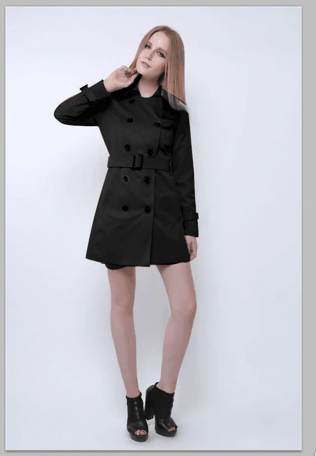 Features of the Women's Slim-fit Elegant Double-breasted Belt Trench Coat
