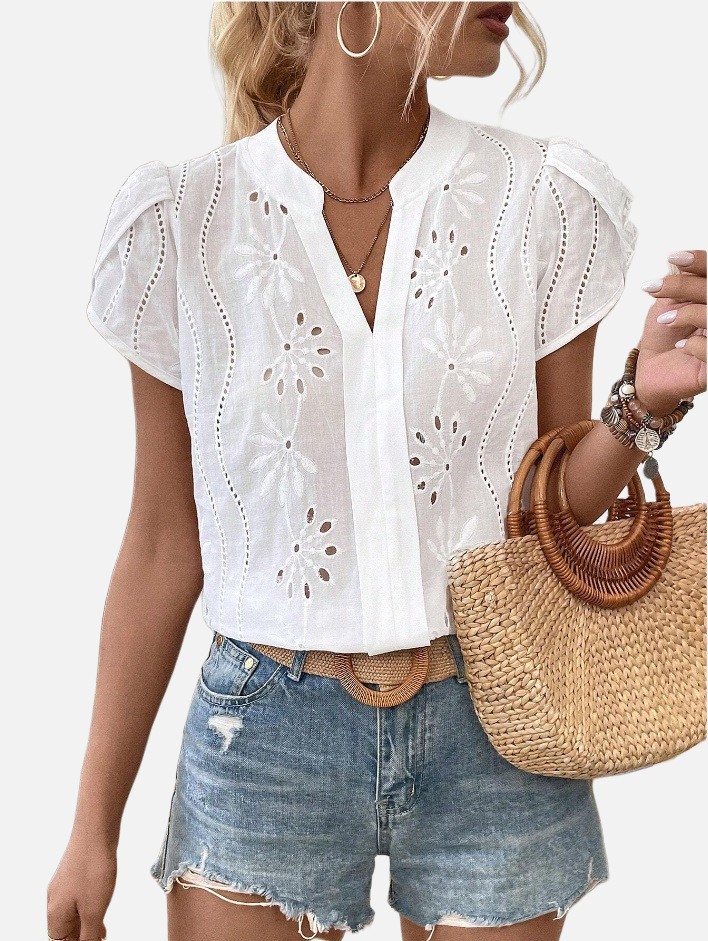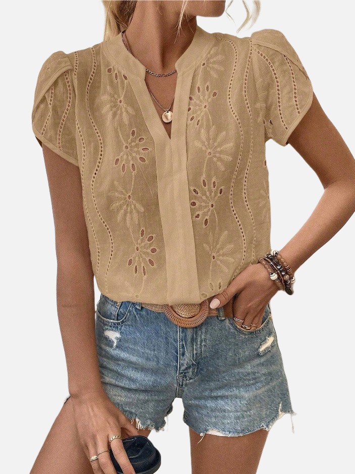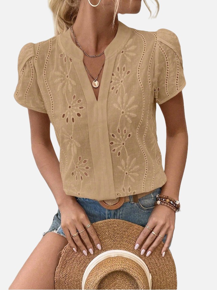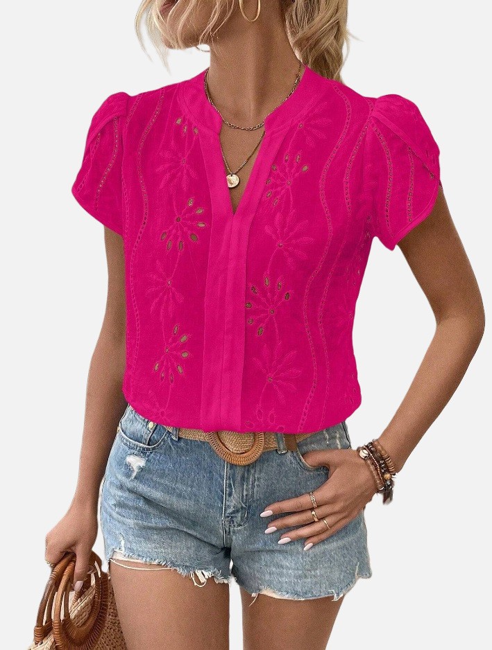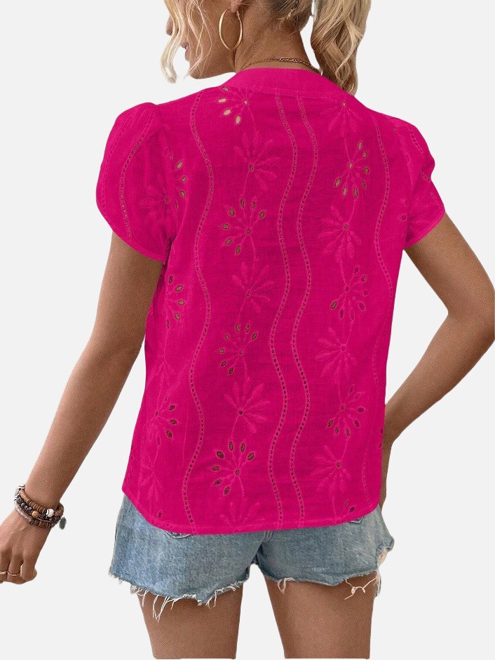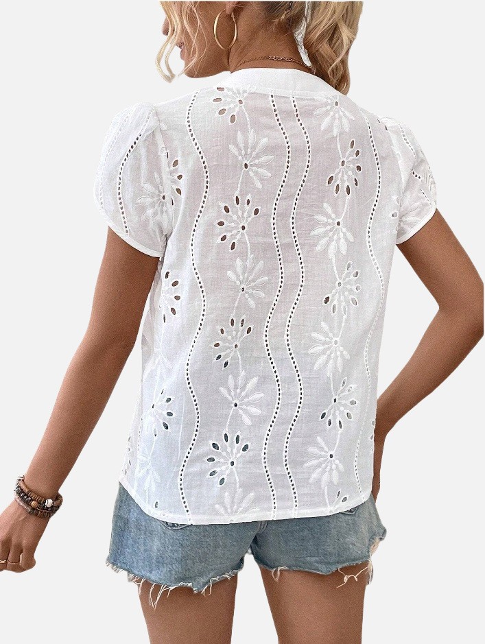 Women's Solid Color Hollow Embroidered Top