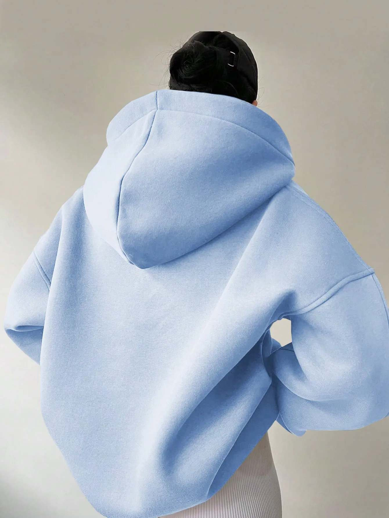 The solid color design of this hoodie makes it incredibly versatile. It can be paired with jeans, leggings, or skirts, allowing you to create various looks depending on the occasion. Whether you're heading to the gym, running errands, or just lounging at home, this hoodie is a stylish and practical choice.