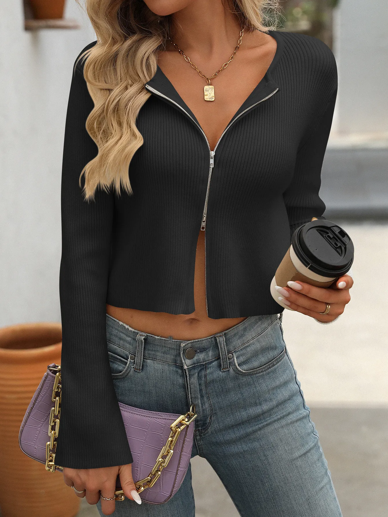 Women's Solid Color Long Sleeve Zipper Cardigan Sweater
