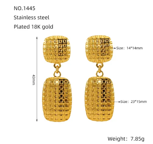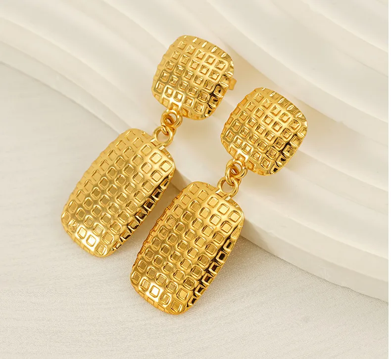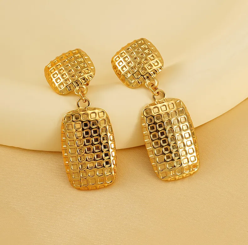 Women's Stainless Steel Square Textile Stud Earrings Retro