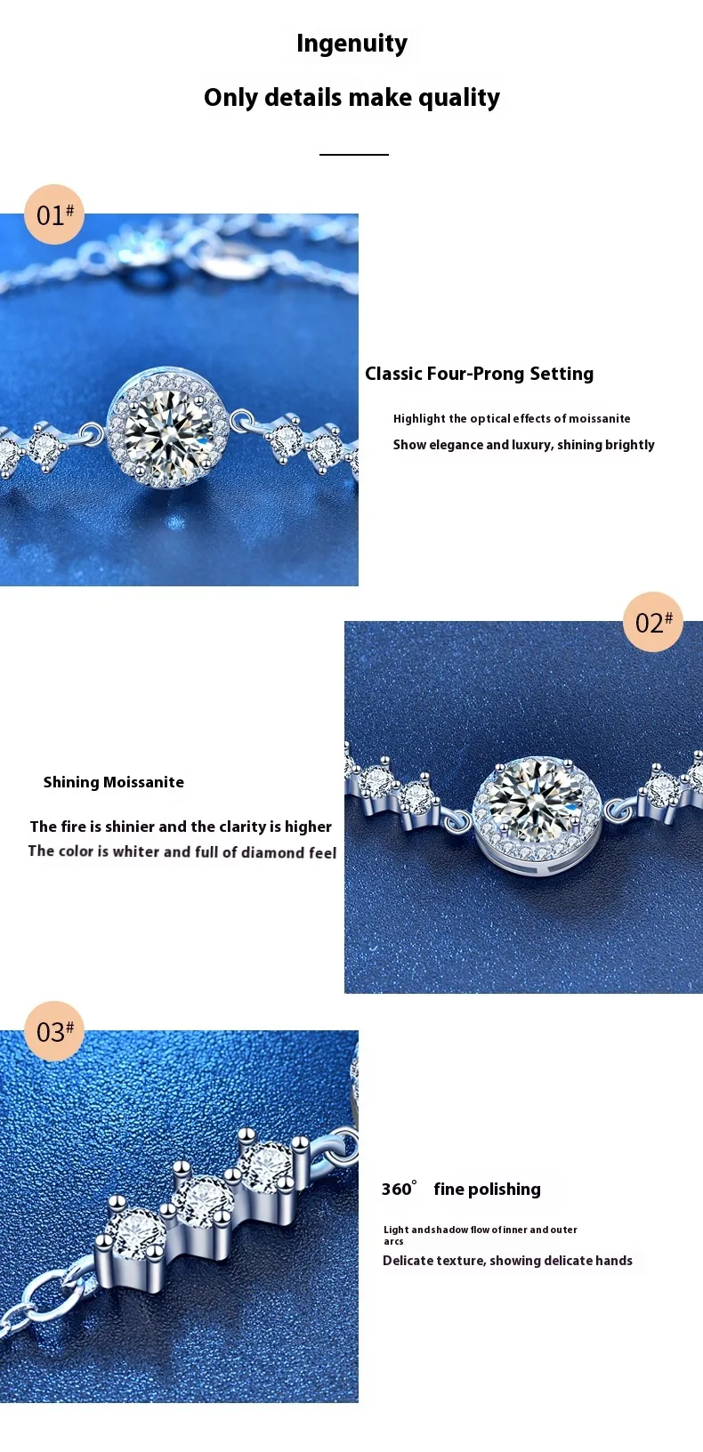At the heart of the Women’s Starry Simple Moissanite Bracelet lies a stunning array of Moissanite gemstones, chosen for their unmatched sparkle and clarity. Moissanite is often referred to as the "diamond alternative" due to its extraordinary brilliance, outshining even diamonds in terms of fire and light dispersion. Each stone is meticulously cut to maximize its radiant glow, making this bracelet a truly eye-catching piece.
