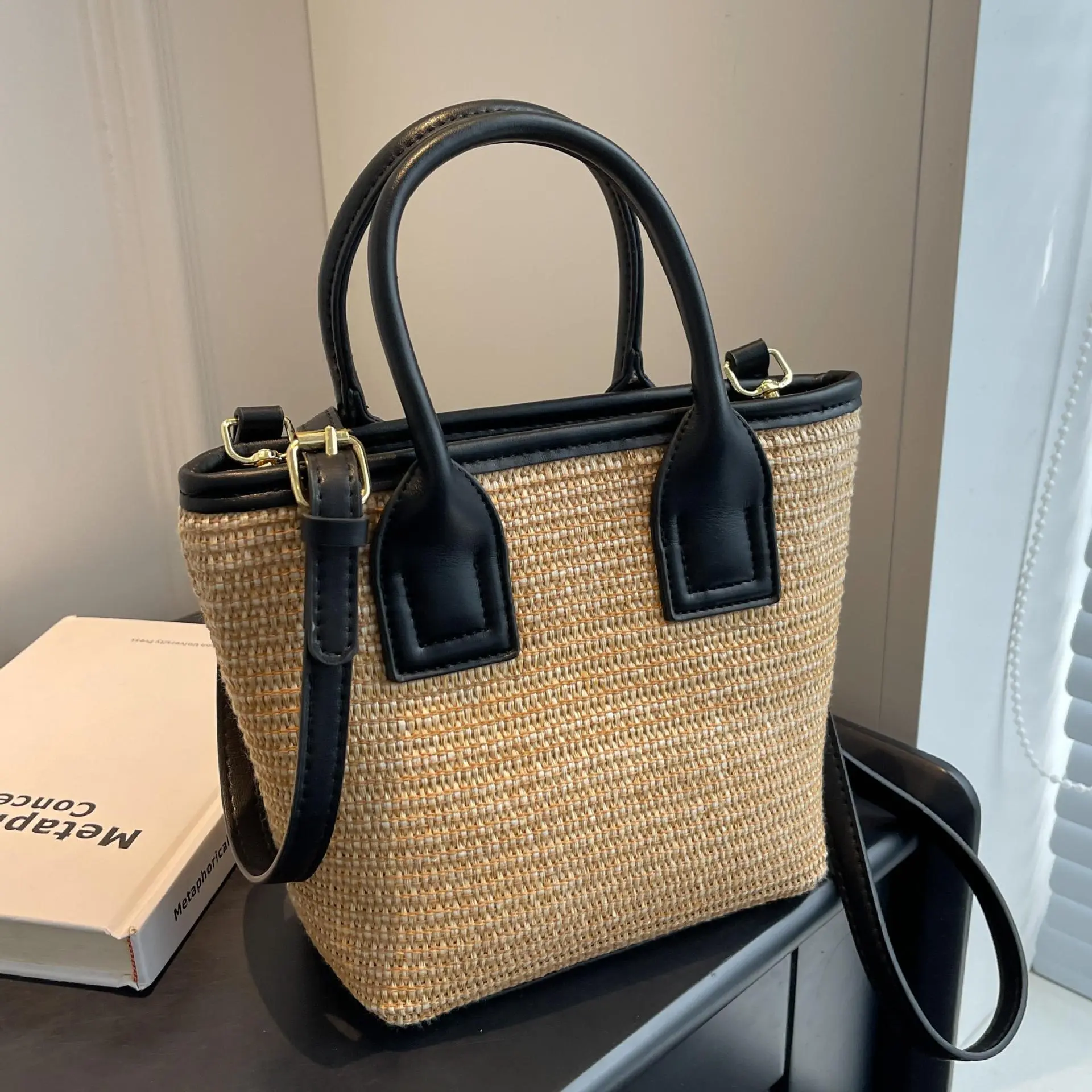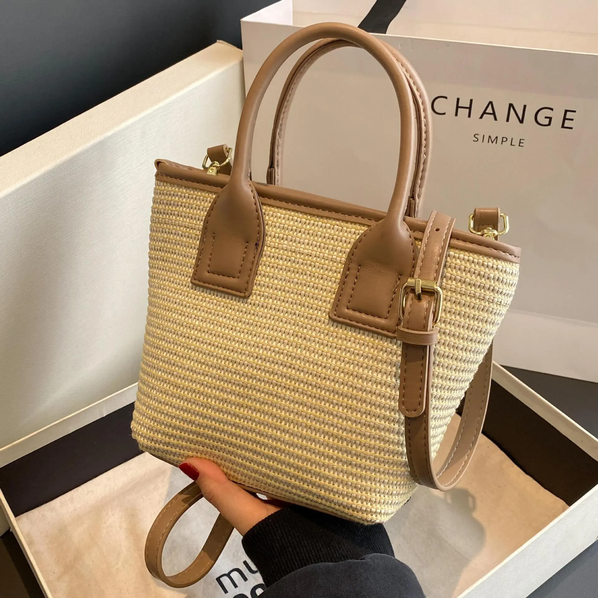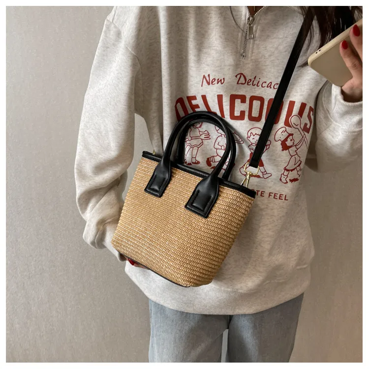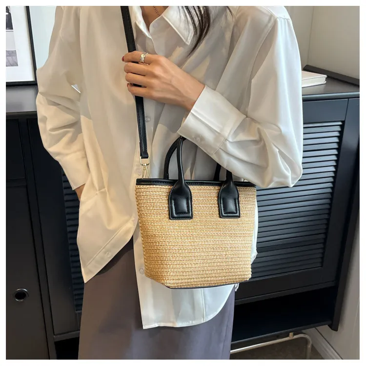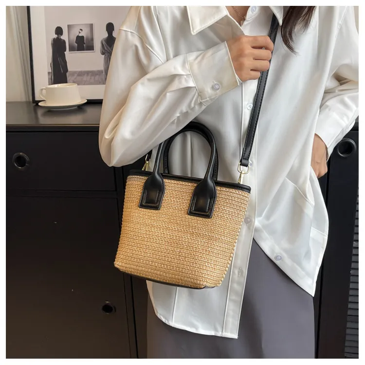 Women's Straw Woven High-grade Portable Bucket Bag