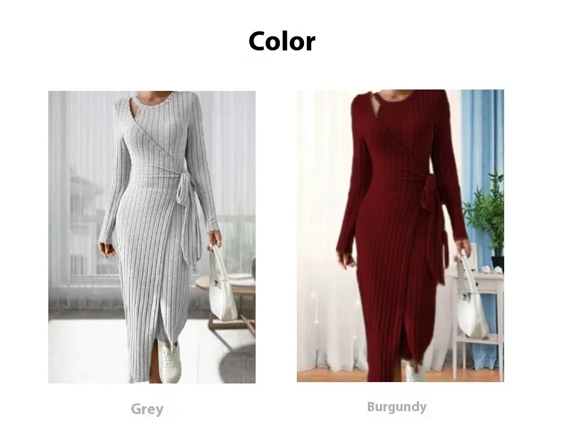 warmth, making this dress ideal for cooler seasons. The sleeves are tailored to enhance the overall silhouette, giving you a flattering fit.