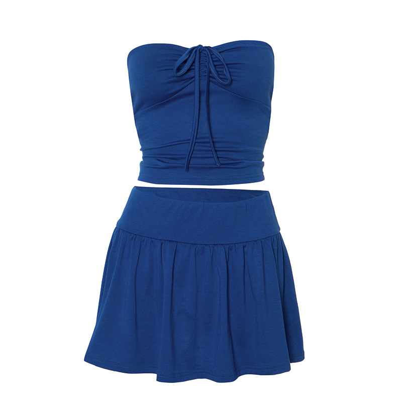 Crafted from high-quality polyester fabric, this dress set offers a comfortable and lightweight wear, ideal for the warm summer months. The sleeveless tube top provides a chic and modern look, while the pleating skirt adds a touch of elegance with its drawstring element. Available in a variety of vibrant colors, this set allows you to express your personal style effortlessly.
