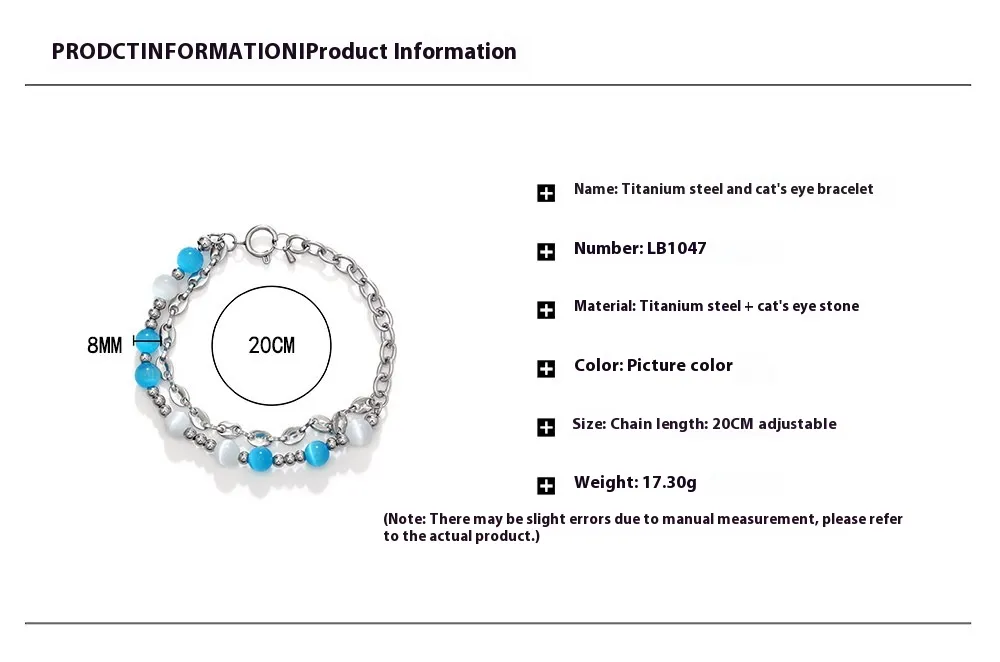 The Women's Titanium Steel Stitching Opal Bracelet is the perfect combination of luxury and functionality. The use of durable titanium steel ensures that it will stand the test of time, while the opal stones add an eye-catching element of color and elegance. Whether you're dressing up for a special occasion or adding a refined touch to your everyday look, this bracelet offers the perfect balance of style, durability, and comfort.
