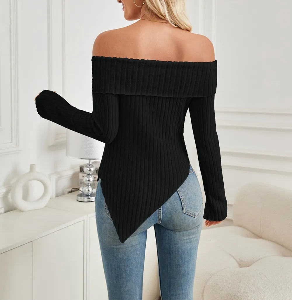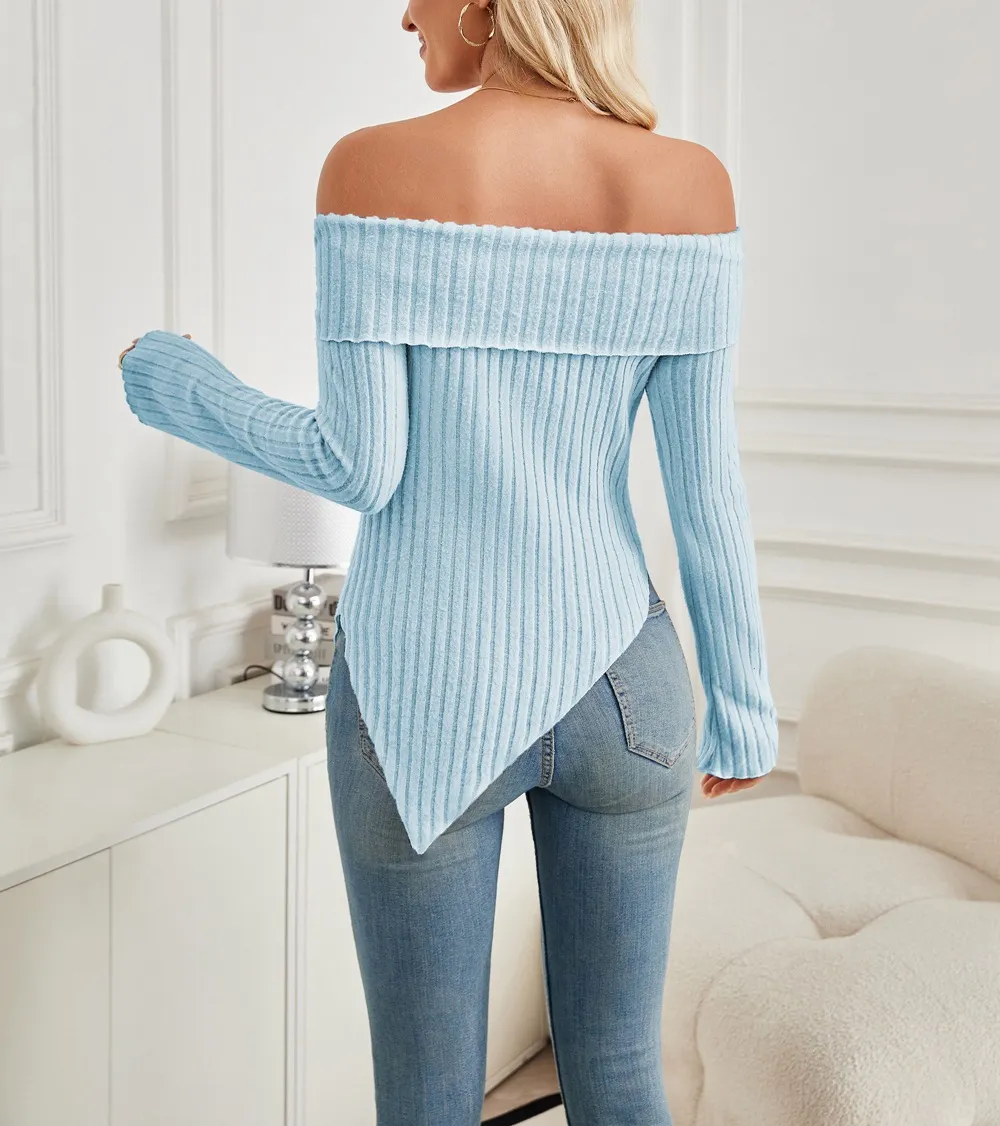 Step up your style game with the Women’s One-Shoulder Ribbed Knit Top, a perfect blend of chic fashion and comfort. This trendy long-sleeve top features a unique one-shoulder design with a cute bow tie detail, adding a touch of elegance and femininity. The ribbed texture offers a flattering, slim fit, while the split hem enhances the stylish appeal of this top, making it ideal for both dressy and casual occasions. Whether you're heading out for a night with friends or a day at the office, this versatile sweater top ensures you stand out in style.