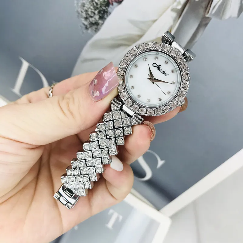 Introducing the Women's Watch Luxury Diamond Fritillary Surface Small Dial Bracelet Full Diamond – a stunning timepiece that epitomizes elegance, luxury, and sophistication. This exquisite watch is designed to dazzle with its full diamond embellishments and a fritillary surface that captures the light from every angle, making it the perfect accessory for any occasion. Whether you're attending a formal event, going out for a casual evening, or simply looking to add a touch of glamour to your everyday look, this luxury diamond watch is the ultimate choice.