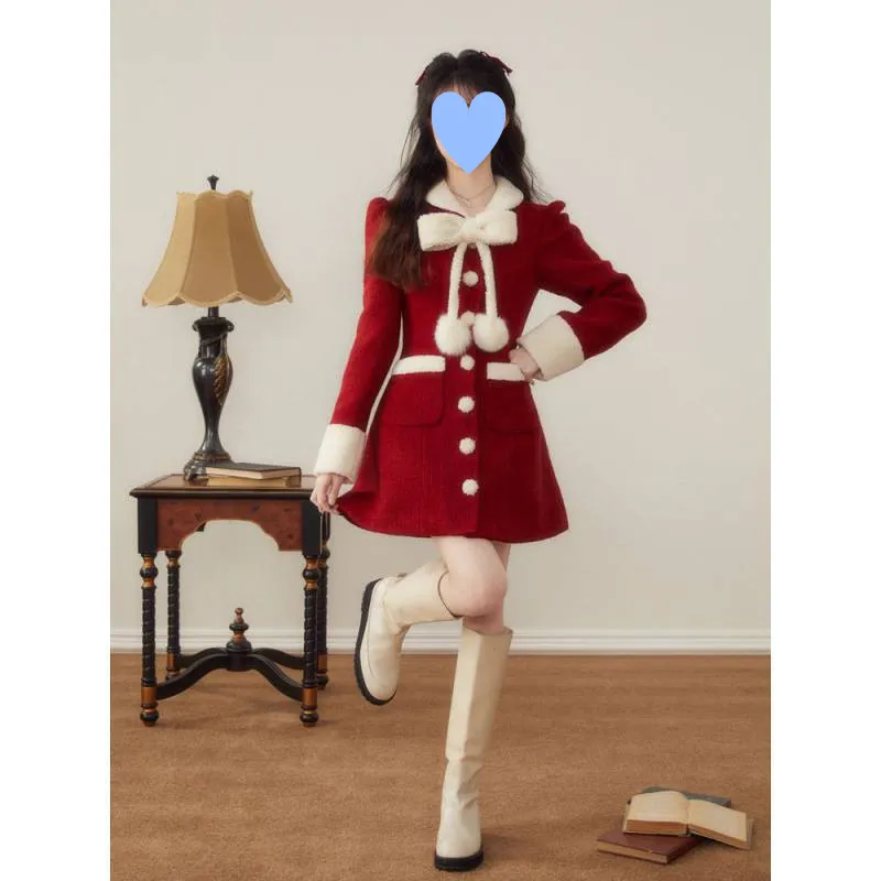 Product Description for Women's Winter Christmas New Year Red Woolen Coat