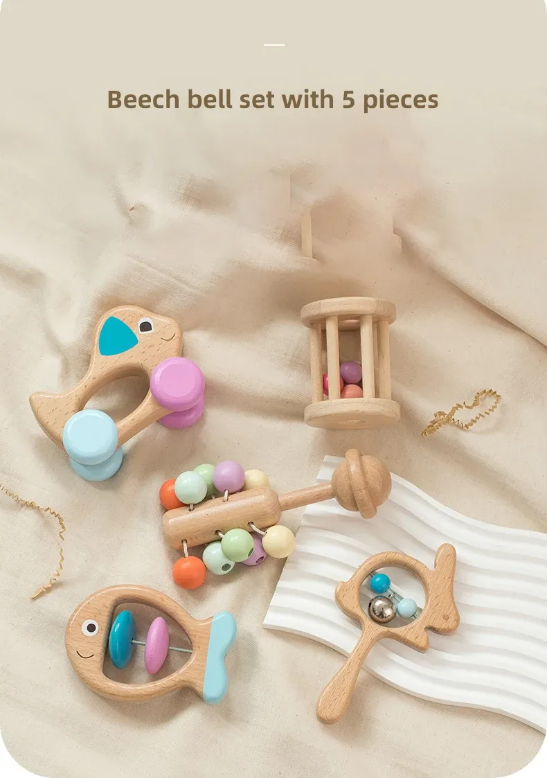 Wooden Baby Colored Five Piece Toy Set