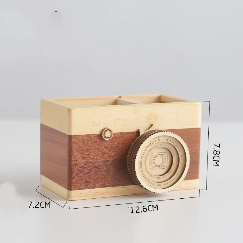 Whether you're a professional working from home or a student looking to add character to your study desk, the Wooden Camera Pen Holder is a must-have. Crafted with care and attention to detail, this pen holder is perfect for anyone who appreciates quirky designs and practical storage solutions. Its intricate, camera-inspired design brings a touch of nostalgia, making it a conversation starter in any setting.