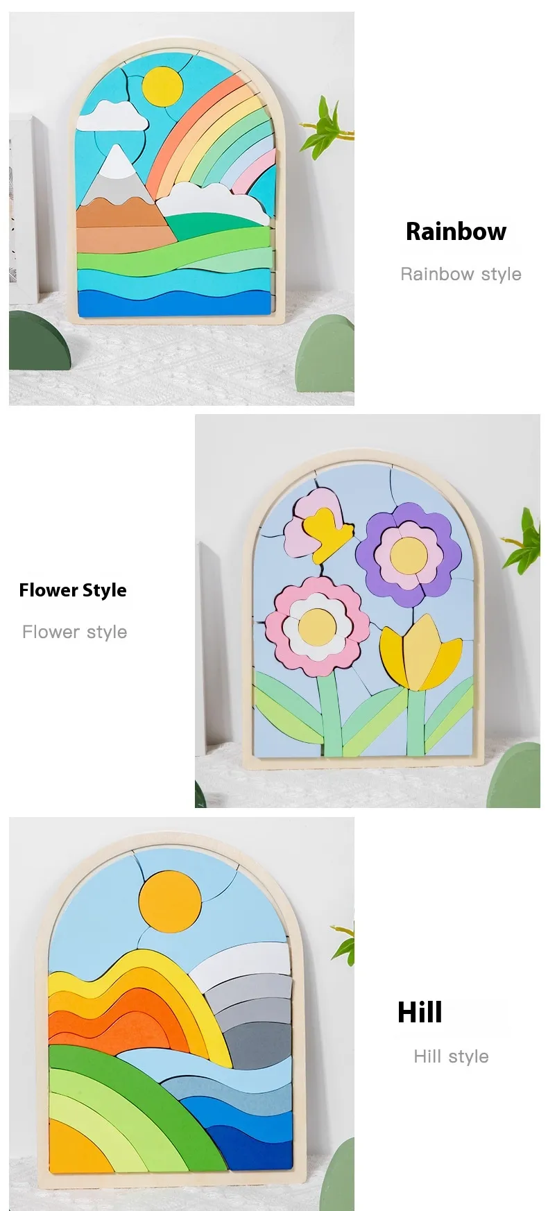 The Wooden Children's Cartoon 3D Rainbow Puzzle is an engaging and educational toy designed to stimulate young minds. This puzzle features vibrant, cartoon-themed pieces that form a three-dimensional rainbow structure, combining play with learning. Ideal for children aged 3 and up, it promotes cognitive development, fine motor skills, and an understanding of colors and shapes.