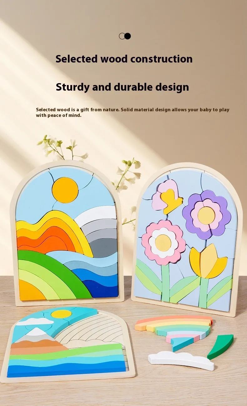 Wooden Children's Cartoon Three-dimensional Rainbow Puzzle