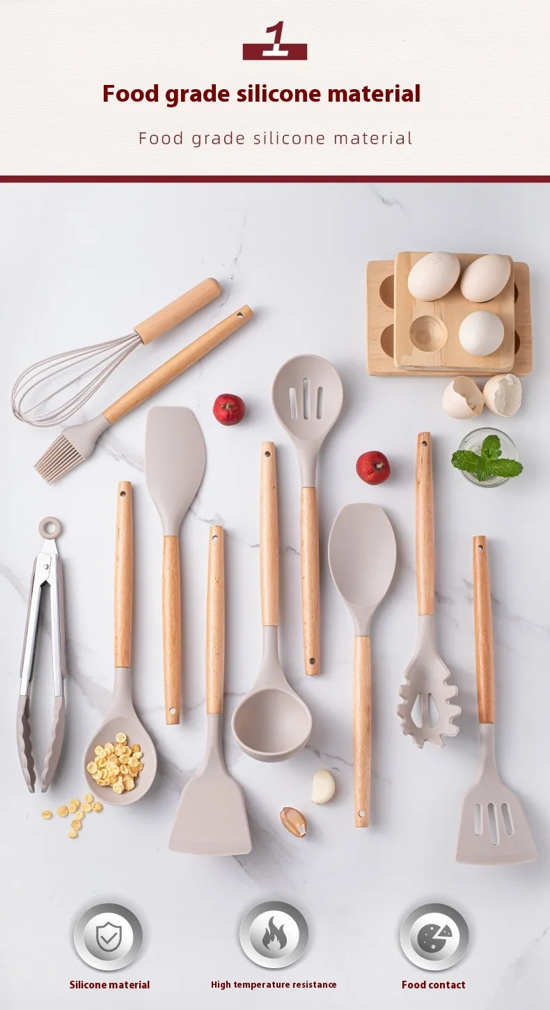 | Material | Food-grade silicone and wooden handles |