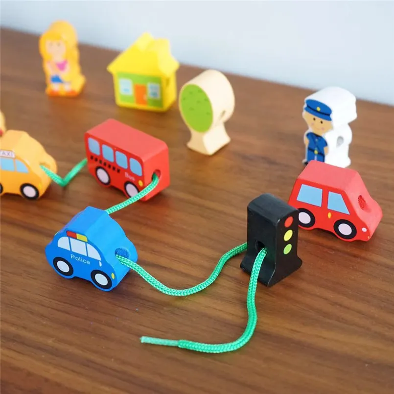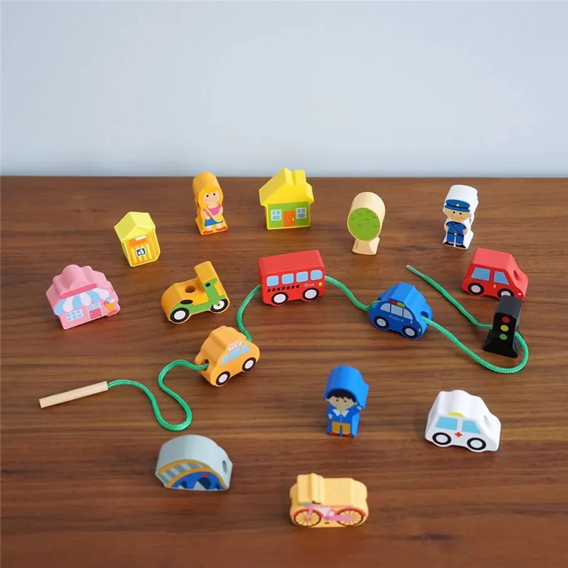 Wooden DIY City String Rope Toy For Children Educational Wear Beads Games Colorful Wood Building Block Set Montessori Toys Gifts