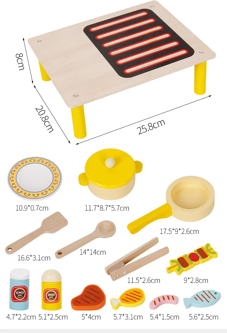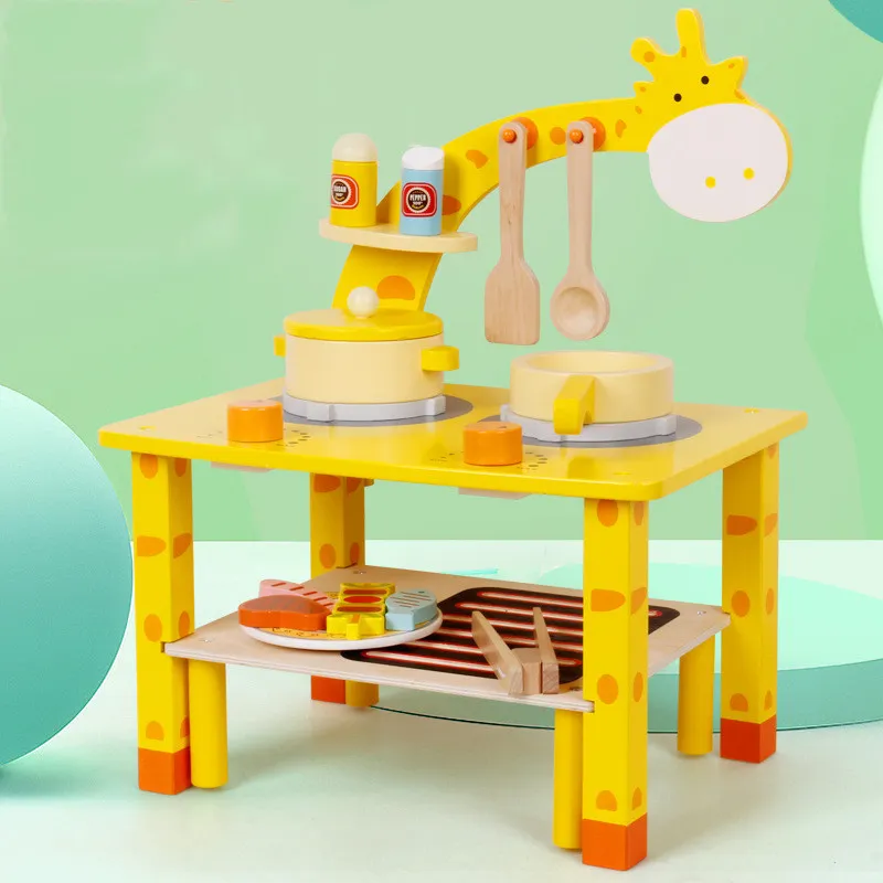 Wooden Playhouse Giraffe Kitchen BBQ Set
