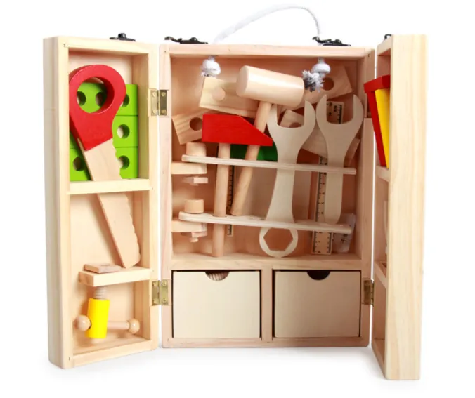 Wooden toy simulation disassembly toolbox