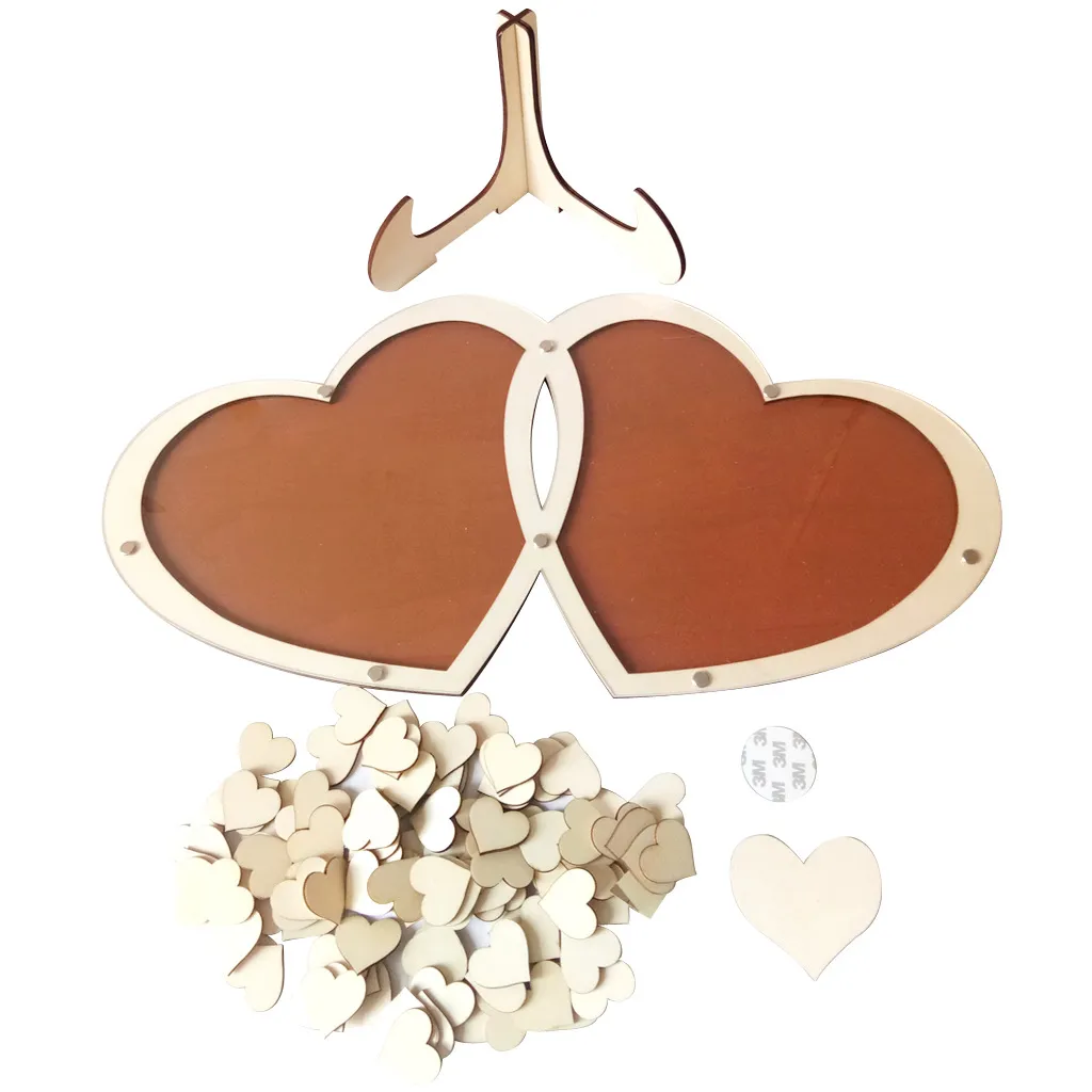 Wooden Wedding Supplies Double Heart Sign Table Decoration
