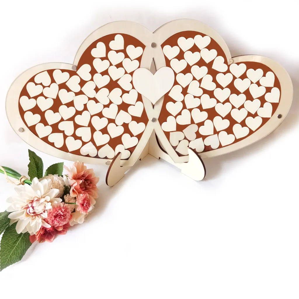 Wooden Wedding Supplies Double Heart Sign Table Decoration