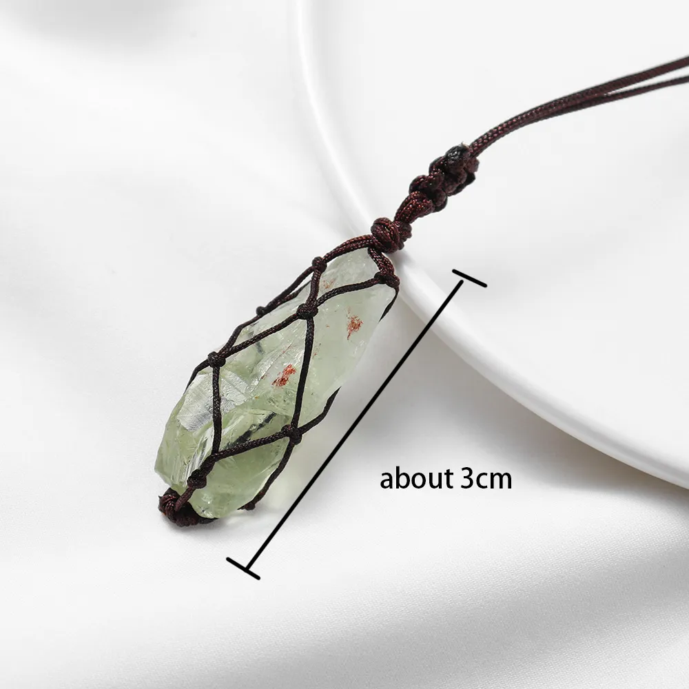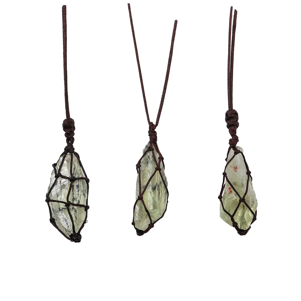 Item number: Green crystal net pocket pendant (brown handmade rope)