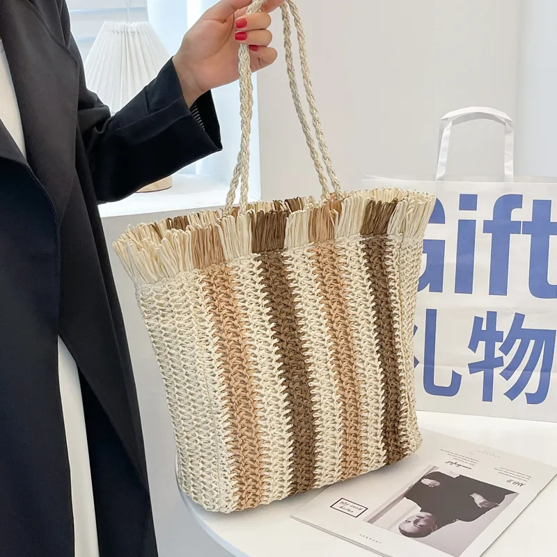 Perfect for New Zealand women who love casual, functional accessories with a touch of beach style, the Woven Stripes Simple Beach Style Tote Bag is a must-have for your summer wardrobe.