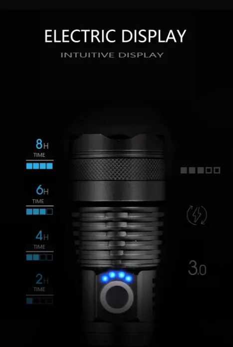* Powerful led flashlight uses CREE x LED led lamp for a maximum output of up to 150,000 lumens.