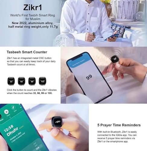The digital tasbeeh ring features a Bluetooth connection, allowing it to sync with the ZikrZen app for tracking your spiritual activities. This app integration helps users monitor their progress, set goals, and receive reminders for daily prayers and supplications. With customizable zikr settings, you can personalize your experience, ensuring that your device reflects your individual spiritual routine and preferences.