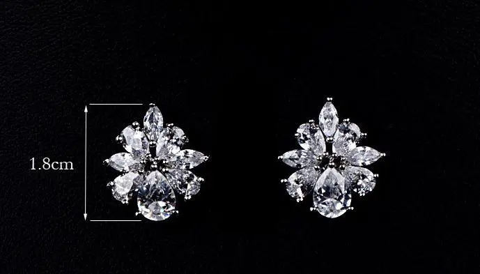 Zircon Flower Stud Necklace Set