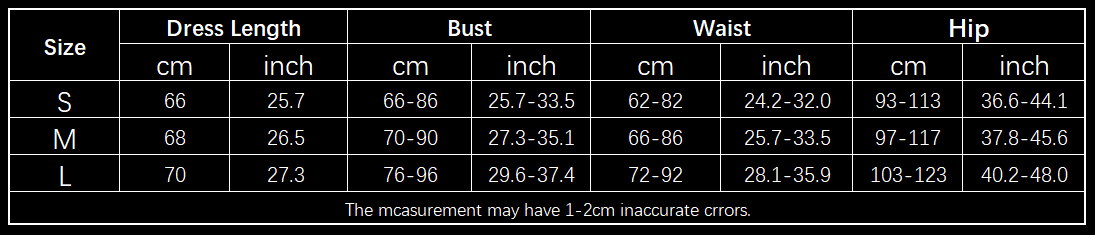 allow 2-3cm differences due to manual measurement.
